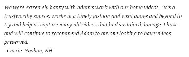 **A $50 minimum per order applies, up to 5 pieces of media. This also applies to a few slides. After that, $10 / tape and $0.25 per slide.